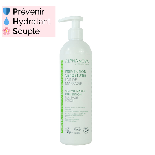 Vergetures – Prévention – Lait de massage Bio – Grossesse et Post-partum